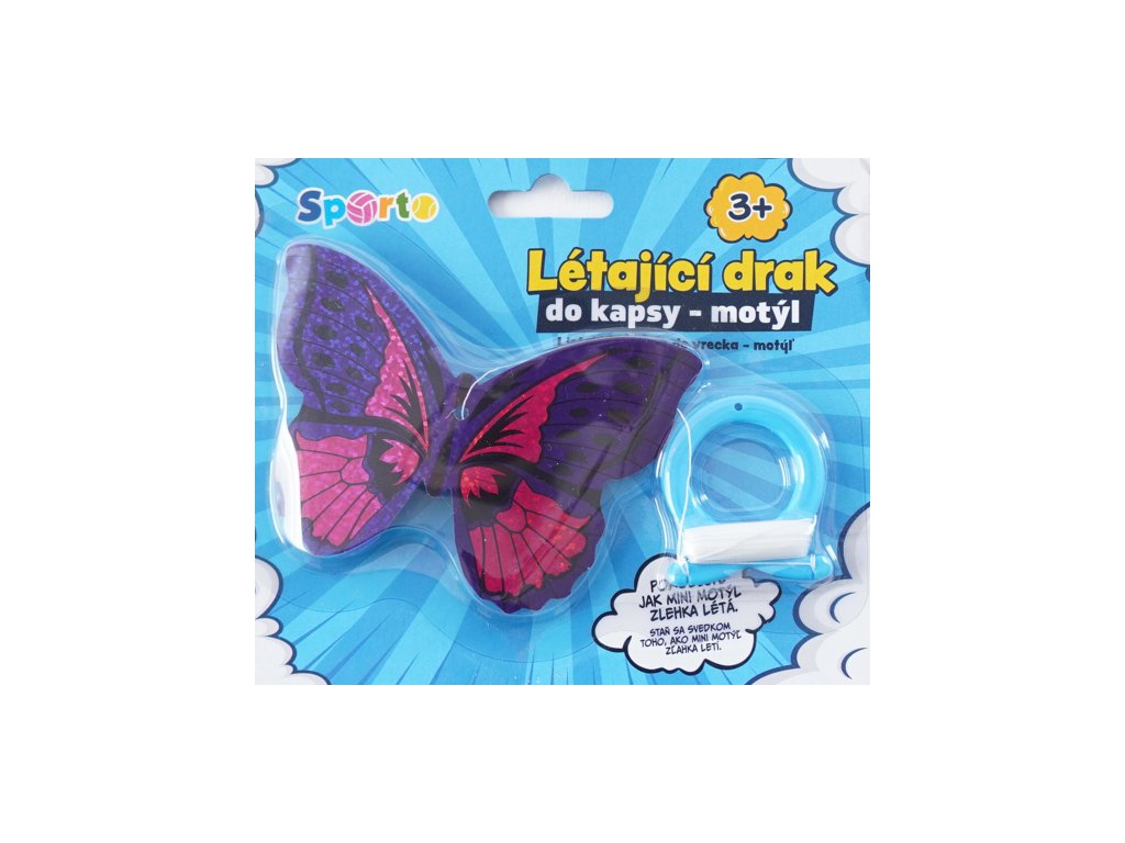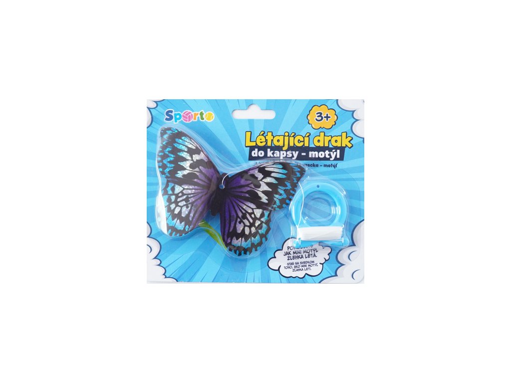 Malý létající drak ve tvaru motýla. Ideální na výlety. Schováš ho do kapsy a už jenom čekáš až bude vítr. Jednoduché pouštění. Krásné létá.Doplňkové parametry