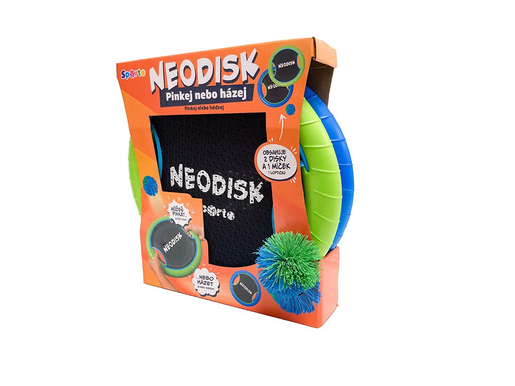 SPORTO Neodisk je dynamická akční hra, ideální pro letní i rekreační aktivity venku (zahrada, park, pláž) nebo i v interiéru. Představuje moderní a zábavnou variantu pro aktivní trávení volného času. Hlavní výhody a 2 herní možnosti: Neodisk kombinuje dvě populární hry do jednoho setu, což zajišťuje maximální variabilitu a zábavu: 1. Pinkání s míčkem (Catch Ball/Trampolínka) Princip: Hráči si pinkají (odpalují) míček pomocí Neodisku, který funguje jako pružná trampolínka. Charakteristika: Díky pružné ploše míček po odpalu perfektně létá a hra je rychlá a dynamická. Skvěle rozvíjí koordinaci ruka-oko a postřeh. Tip: Můžete zkoušet různé odpalové techniky nebo se strefovat do terčů či k sobě na delší vzdálenosti. 2. Házení jako disk (Frisbee) Princip: Neodisk lze použít také jako klasický házecí disk (frisbee). Charakteristika: Díky svému tvaru dobře létá vzduchem, čímž nabízí druhou, tradiční formu sportovní hry. Neodisk je ideální volbou pro ty, kteří hledají přenosnou hru pro aktivní zábavu s kamarády nebo rodinou.Doplňkové parametry
