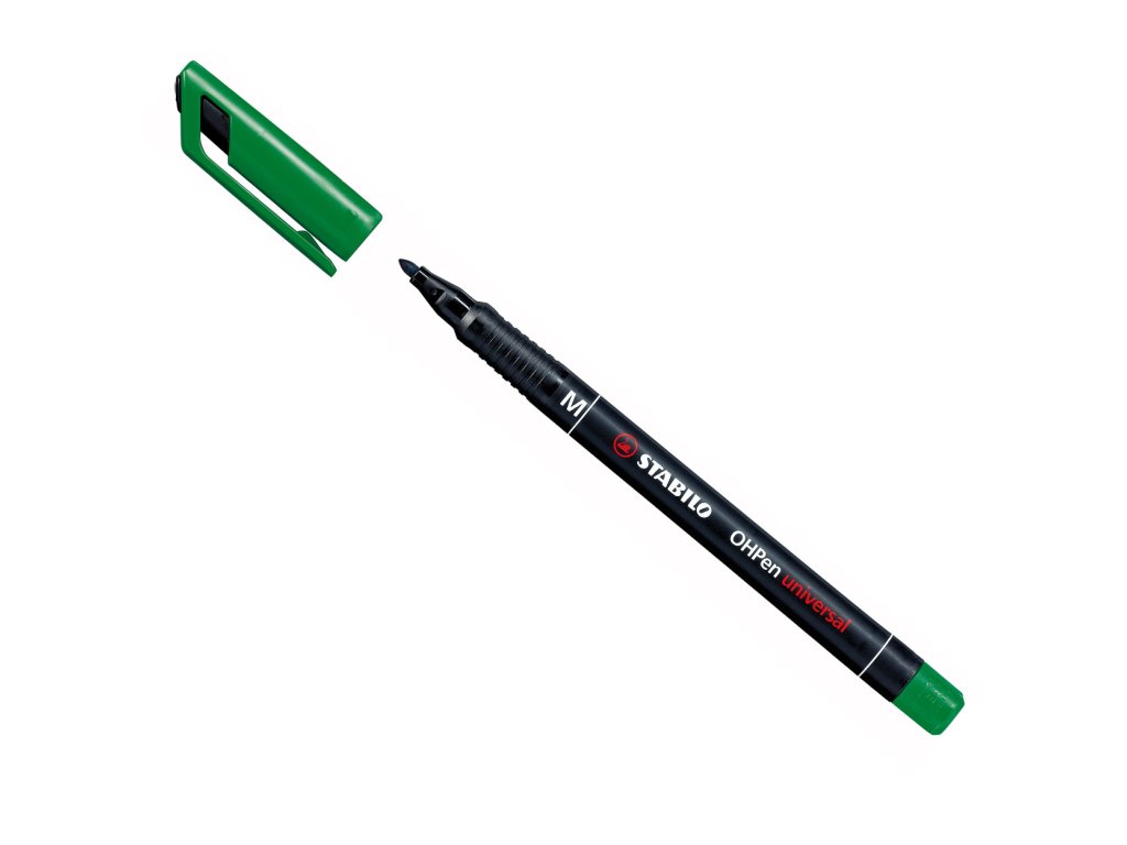 Permanentní popisovače pro značení téměř všech hladkých povrchů. Protiskluzová úchopová zóna, praktický klip, bez víka vydrží až 3 dny. STABILO® OHPen universal Medium (M). Hrot: kulatý, šířka dráhy je 1 mm. Barva: zelená.Doplňkové parametry