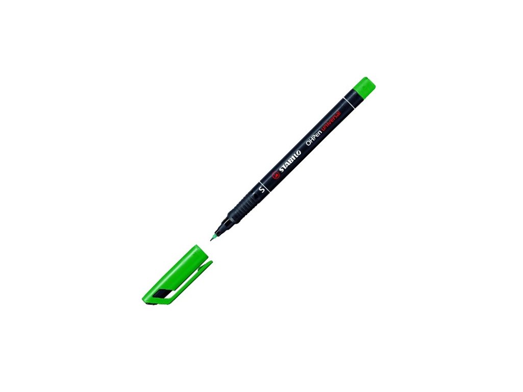 Permanentní popisovač STABILO OHPen universal superfine zelená. - Popisovač na téměř všechny hladké povrchy- Černé tělo značí permanentní inkoust, šedé značí inkoust na vodní bázi- Neklouzavá úchopová zóna a praktický klips- 3 šířky stopy- Superfine, Fine, MediumDoplňkové parametry
