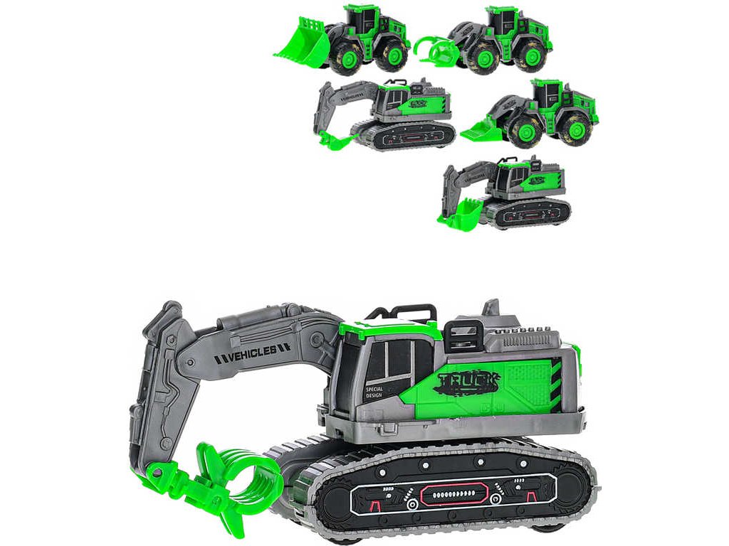 Stavební vozidla zelená 11,5 cm na setrvačník, 9 druhů