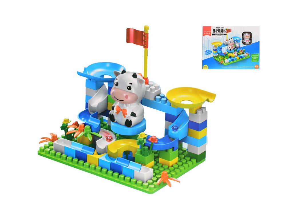 Stavebnice 93ks s dráhou a zvířátkem v krabičce
