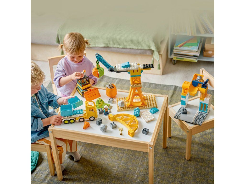 Představte malým stavitelům hračku Staveniště a vozidla 3 v 1 (10476), se kterou stavění nikdy nekončí! Stavitelé od 3 let si užijí budou vtaženi do hry na rušném staveništi, kde si vyzkouší nakládání a vykládání materiálu, stejně jako zvedání a přemisťování kamení a kostek pomocí celé řady stavebních vozidel LEGO® DUPLO®. Děti si mohou postavit buldozer se zvedací lžicí, sklápěcí náklaďák, míchačku na beton s otočným bubnem a jeřáb s pohyblivým ramenem a otevíracím drapákem. Z kostek lze takésestavit vysoký jeřáb, nákladní stanici, přes kterou můžou projíždět náklaďáky, a most, pod kterým projíždějí vozidla. Malí stavitelé si se stavebnicí užijí hodiny zábavy, během kterých mohou rozvíjet důležité dovednosti. Děti, které milují řešení problémů, při stavění konstrukcí procvičí kritické myšlení. Dále mohou také rozvíjet orientaci v prostoru díky 2 figurkám dělníků, které pomocí zábavných funkcí nákladního auta přesouvají kostky po staveništi. Stavebnice obsahuje 84 dílků.Doplňkové parametry