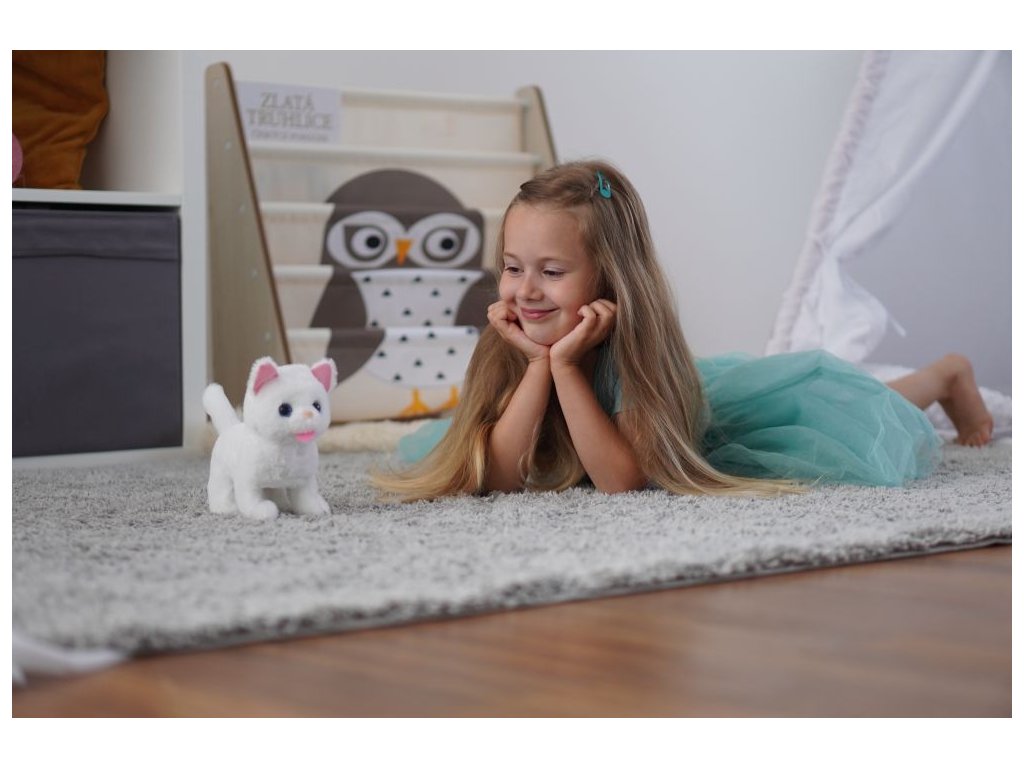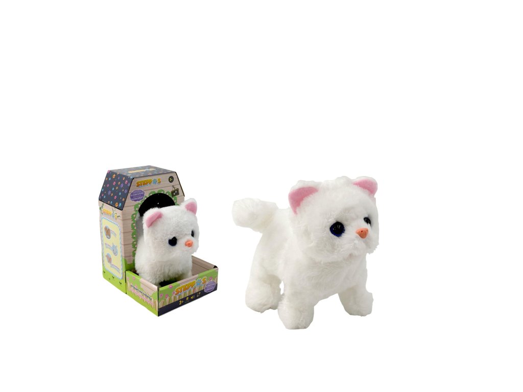 STEPPOS kočička na baterie je interaktivní hračka pro děti, která přináší spoustu zábavy Co kočička umí? Chodit: Kočička se pohybuje jako skutečná a roztomile našlapuje. Mňoukat: Vydává realistické zvuky kočičího mňoukání, které děti jistě potěší. Hýbat ocáskem: Ocásek kočičky se pohybuje a dodává jí na živost. Pro koho je hračka určena? Hračka je vhodná pro malé děti, které milují zvířátka. K čemu hračka slouží? Kočička vypadá a chová se jako skutečná, což děti nadchne. Zábava: Hračka nabízí hodiny zábavy a potěší děti všech věkových kategorií. Provoz kočičky na baterie 2x AA baterie , které nejsou součástí balení.Doplňkové parametry