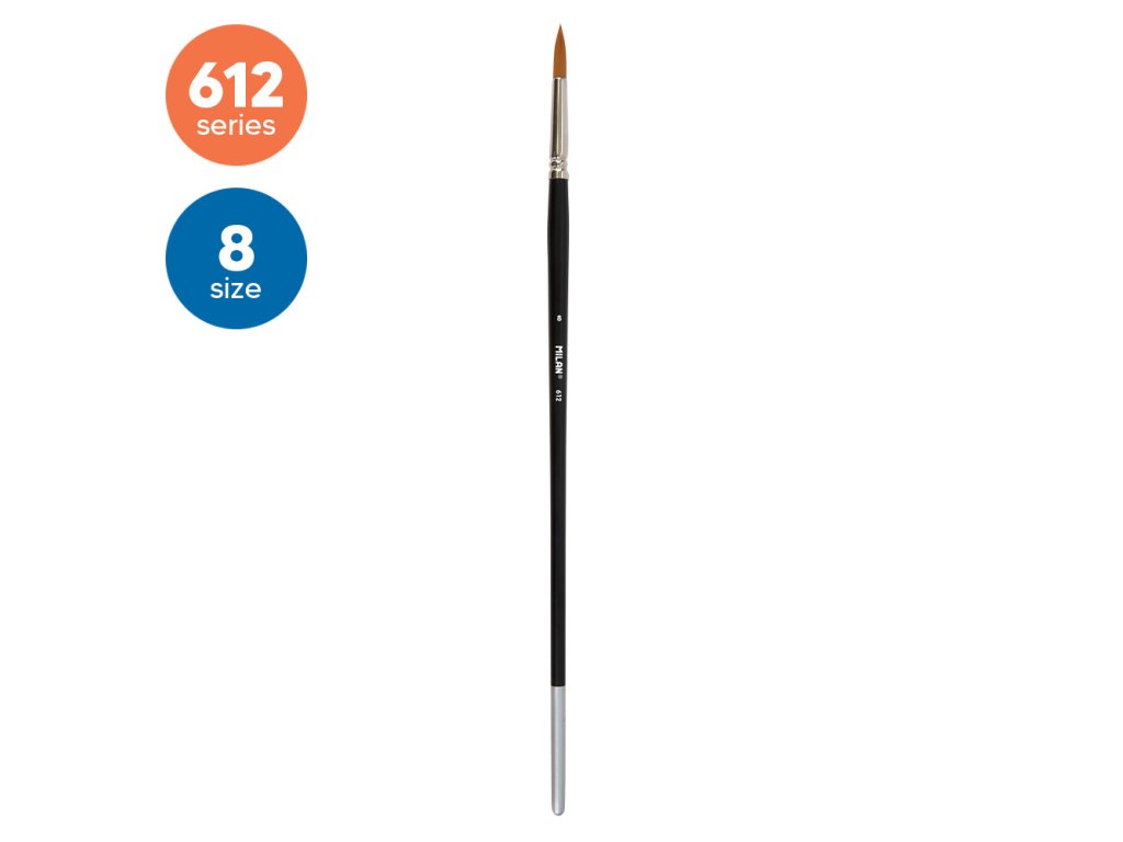 Plochý štětec č. 8 s dlouhou dřevěnou rukojetí. Černá lakovaná povrchová úprava (matná) s niklovým úchopem. Složení: syntetické štětiny, průměr vlákna 0,12 mm. Průměr štětin: 6 mm. Délka štětin: 22 mm. Délka štětce: 298 mm.Doplňkové parametry