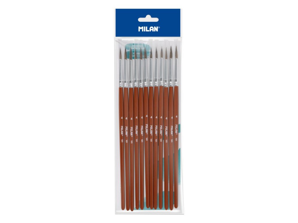 Kulatý štětec č. 4 z přírodního pony vlasu, s hnědou lakovanou rukojetí ze dřeva se stříbrným bezešvým kováním, je díky jemnosti vlákna vhodný zejména pro použití ve školách na malbu akvarelovými a temperovými barvami. Délka vlasu 12,2 mm, průměr 2,9mm.Doplňkové parametry