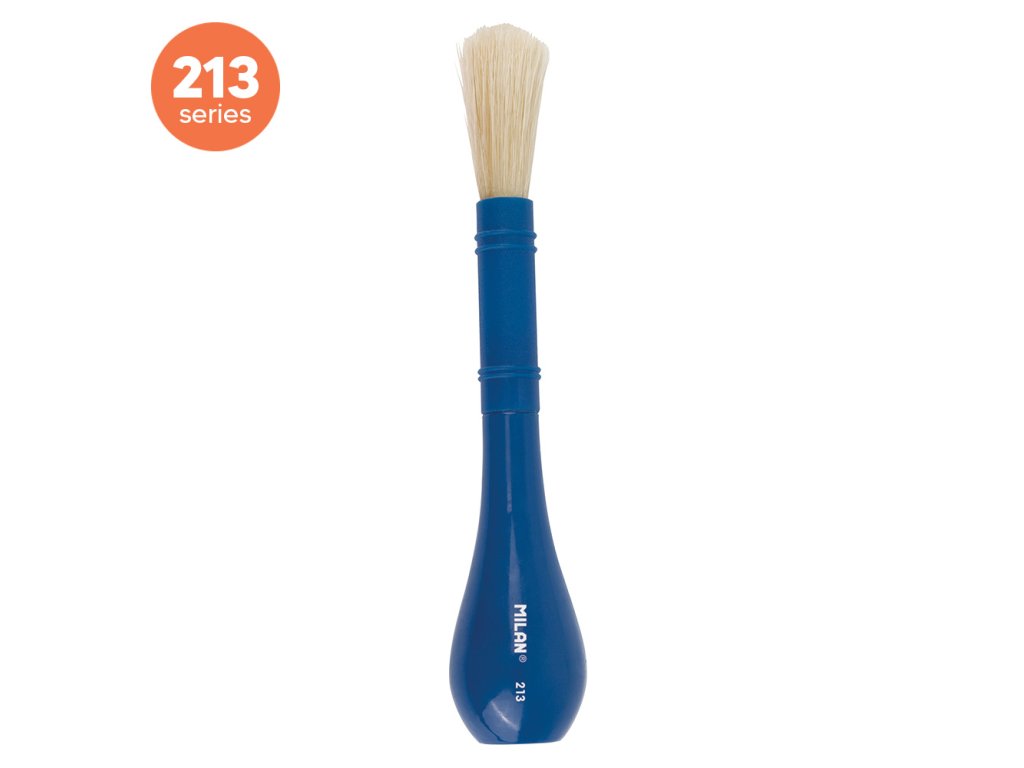 Kulatý štětec ze série 213 s krátkou plastovou zelenou rukojetí. Speciálně navržené pro děti od 3 let. Dno rukojeti je rovné, což umožňuje jeho umístění ve svislé poloze. Složení: z přírodních prasečích štětin. Vhodný na lepidlo, laky a temperové barvy. Průměr štětin: 13,4 mm. Délka štětin: 37,5 mm. Délka štětce: 155 mm.Doplňkové parametry