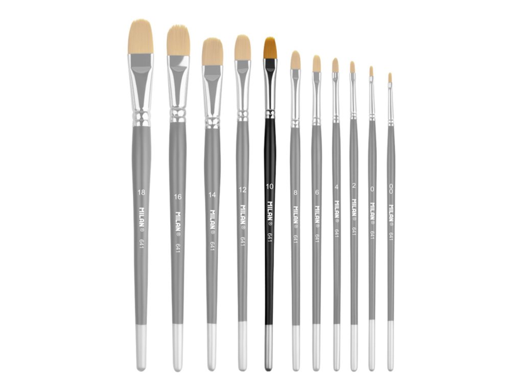 Plochý štětec č. 10 s dřevěnou rukojetí. Černá lakovaná povrchová úprava (matná) s niklovým úchopem. Složení: syntetické štětiny, průměr vlákna 0,70 mm a 0,10 mm. Vhodný na olejové a akrylové barvy. Průměr štětin: 10 mm. Délka štětin: 15 mm. Délka štětce: 213 mm.Doplňkové parametry