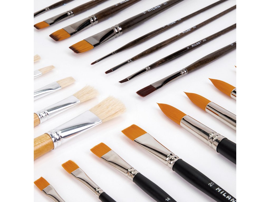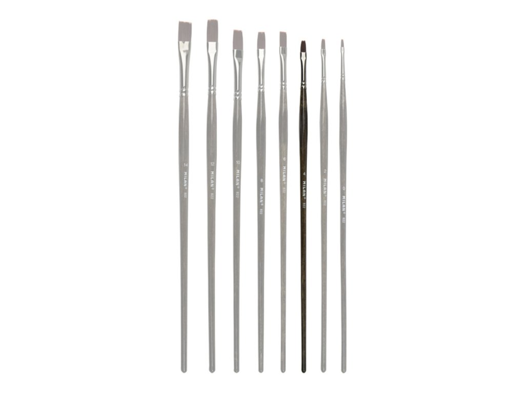 Plochý štětec MILAN 822 s dlouhou ergonomickou dřevěnou rukojetí. Ořechová lakovaná povrchová úprava a niklová objímka. Složení: syntetické štětiny (vlákna O 0,20 mm). Vhodný na malování olejem a akrylem. Průměr štětin: 5,7 mm. Délka štětin: 10,5 mm. Štětec: 295 mm.Doplňkové parametry