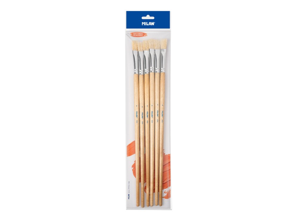 Plochý štětec s dlouhou dřevěnou rukojetí. Přírodně zalakovaná povrchová úprava a hliníková dutinka. Složení: přírodní štětina prasat Chungking. Vhodný na malování olejem a akrylem. Průměr štětin: 10,5 mm. Délka štětin: 19 mm. Délka štětce: 310 mm.Doplňkové parametry