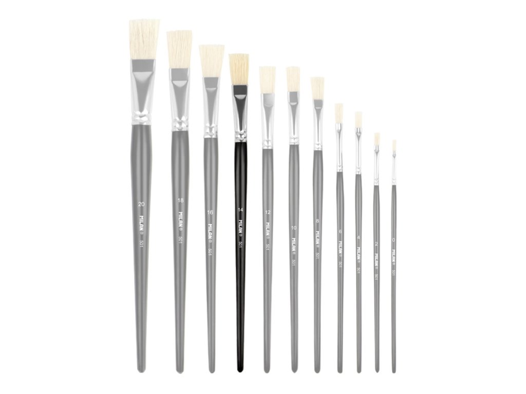 Plochý štětec č. 14 z přírodních prasečích štětin, s černou lakovanou rukojetí ze dřeva se stříbrným bezešvým kováním, je díky odolnosti a pevnosti vlasu vhodný pro víceúčelové použití. Určený pro malování na nejrůznější povrchy a druhy technik, při ručníDoplňkové parametry