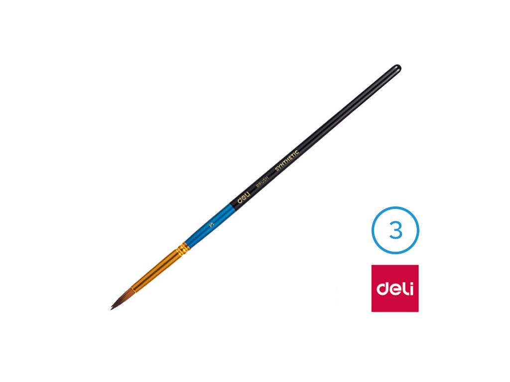 Štětec syntetický kulatý č. 3 DELI: - štětec č. 3- kulatý štětec se syntetickými štětinami- měkký štětec pro snadné malování- vhodné pro školáky, předškoláky i pro umělceDoplňkové parametry