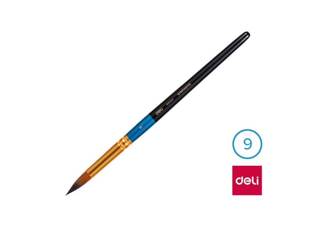 Štětec syntetický kulatý č. 9 DELI: - štětec č. 9- kulatý štětec se syntetickými štětinami- měkký štětec pro snadné malování- vhodné pro školáky, předškoláky i pro umělceDoplňkové parametry