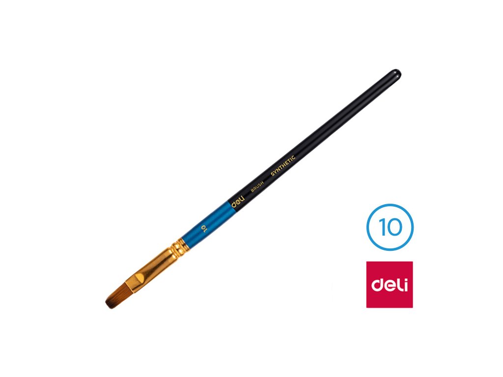 Štětec syntetický plochý č. 10 DELI: - štětec č. 10- plochý štětec se syntetickými štětinami- měkký štětec pro snadné malování- vhodné pro školáky, předškoláky i pro umělceDoplňkové parametry