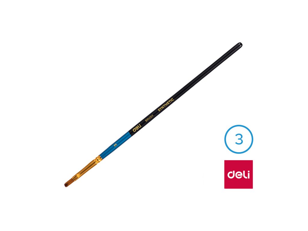 Štětec syntetický plochý č. 3 DELI: - štětec č. 3- plochý štětec se syntetickými štětinami- měkký štětec pro snadné malování- vhodné pro školáky, předškoláky i pro umělceDoplňkové parametry