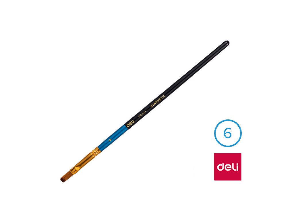 Štětec syntetický plochý č. 6 DELI: - štětec č. 6- plochý štětec se syntetickými štětinami- měkký štětec pro snadné malování- vhodné pro školáky, předškoláky i pro umělceDoplňkové parametry