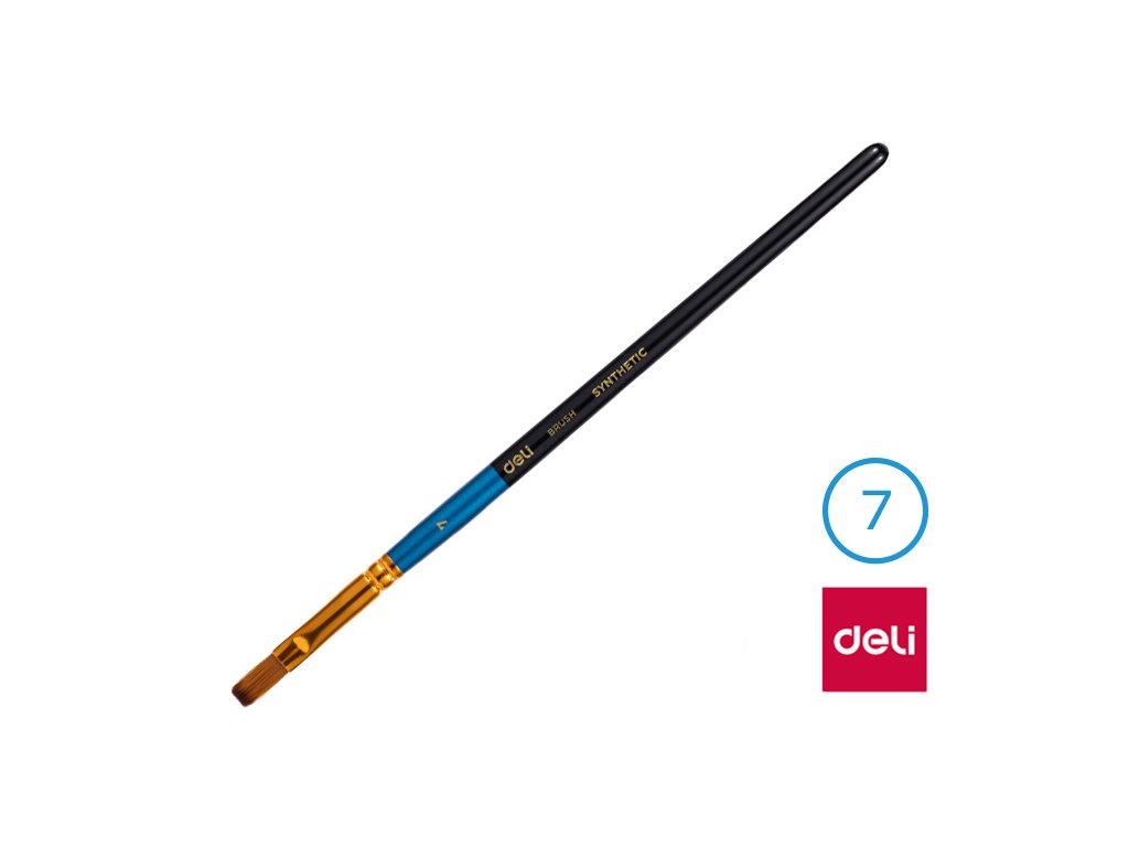 Štětec syntetický plochý č. 7 DELI: - štětec č. 7- plochý štětec se syntetickými štětinami- měkký štětec pro snadné malování- vhodné pro školáky, předškoláky i pro umělceDoplňkové parametry