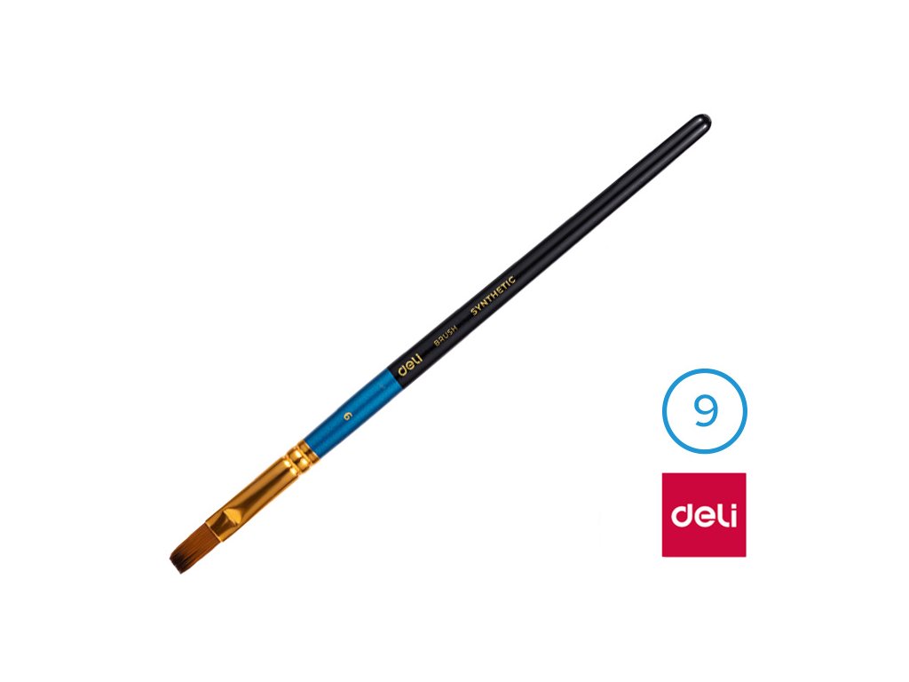 Štětec syntetický plochý č. 9 DELI: - štětec č. 9- plochý štětec se syntetickými štětinami- měkký štětec pro snadné malování- vhodné pro školáky, předškoláky i pro umělceDoplňkové parametry