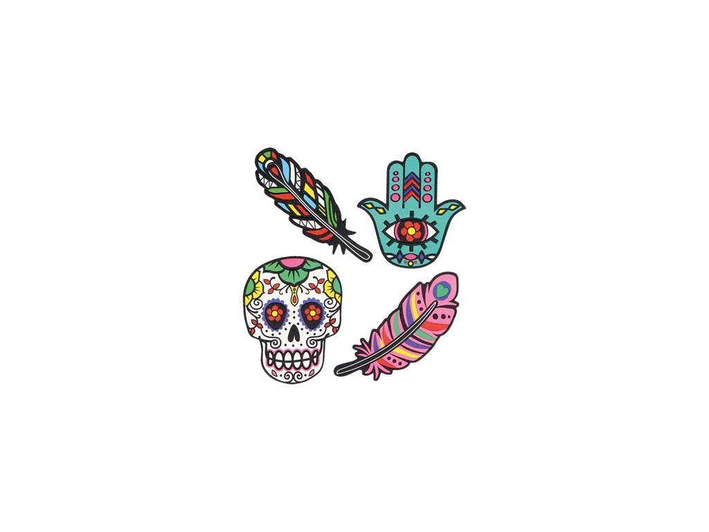 Sticker na tašku Scull, sada 4 ks. Vyzdob si svou tašku! Pomocí nalepovacího klipu se z batohu stane rázem pravý originál. Nalepovací klipy je možné vybírat ze setů s různou tématikou. Velikost klipů, v rozmezí od 5 - 10 cm.Doplňkové parametry