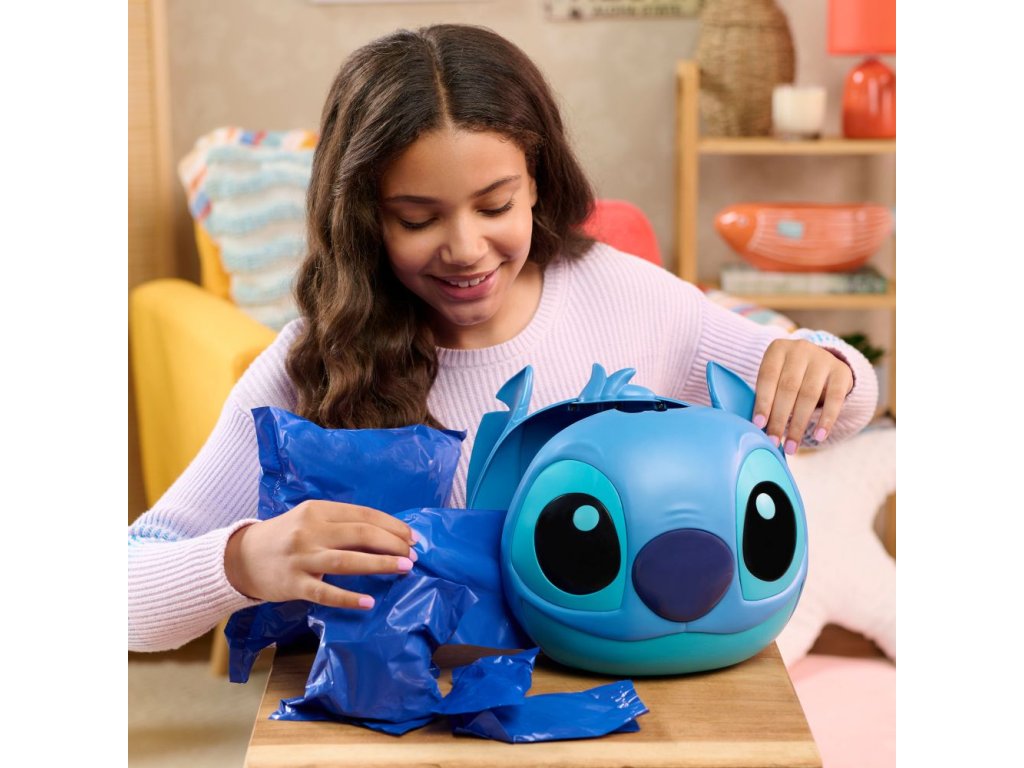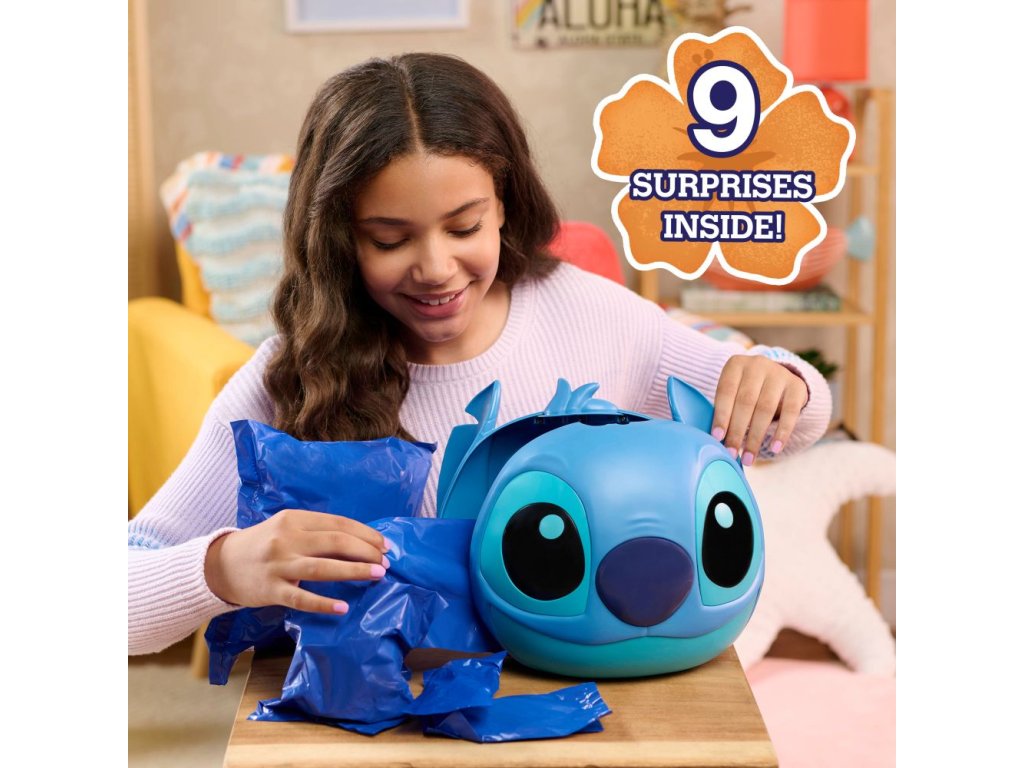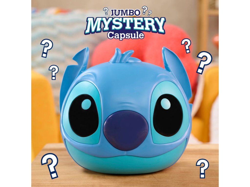 Stitch Jumbo mystery kapsule je ve tvaru Stitchovi hlavy a je 23 cm vysoká. Je to hračka plná překvapení. Děti musí rozbalit mnoho sáčků skrytých uvnitř. Objeví tam třeba malého plyšáka, kterého lze připnout na batoh, nebo minifigurky, Slinky, plakát a samolepky. Vhodné pro děti od 3 let.Doplňkové parametry