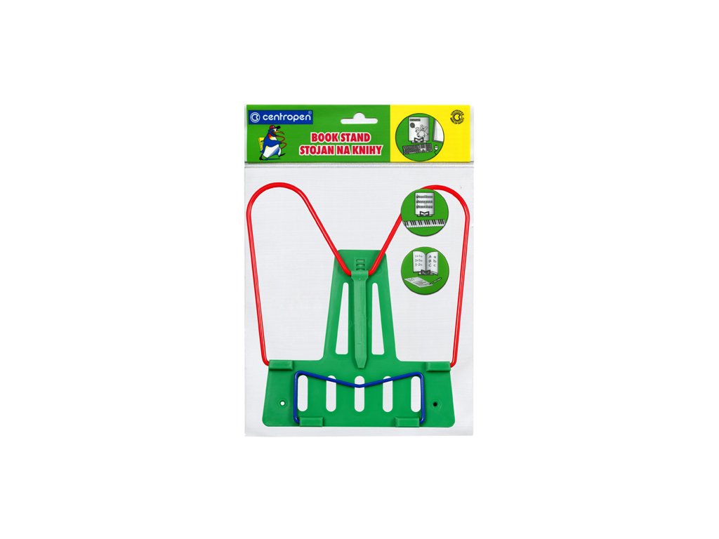 Rozkladací stojan na knihu, sestávající z plastové podstavy a dvou kovových stojek; dodávaný jednotlivě nebo v balení po 10 kusech, mix barev.Doplňkové parametry
