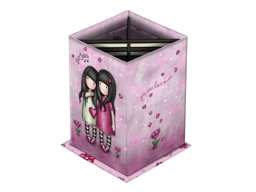 Tento stojánek je vyroben z tvrdého kartonu a každá jeho strana je ozdobená motivem Gorjuss. Vnitřní prostor je rozdělen přepážkami, které jsou dané do kříže, na čtyři stejně velké části. Stojánek bude na vašem stole vždy dobrým pomocníkem, při uspořádání vašich psacích potřeb. Podrobný popis: 4 stejně velké úložné prostory třpytivá vnější strana materiál: tvrdý karton rozměry: 7,6 x 11,2 x 7,6 cm Obchodní informace výrobce: Santoro London kolekce: Gorjuss Sparkle/Bloom motiv: You Can Have MineDoplňkové parametry