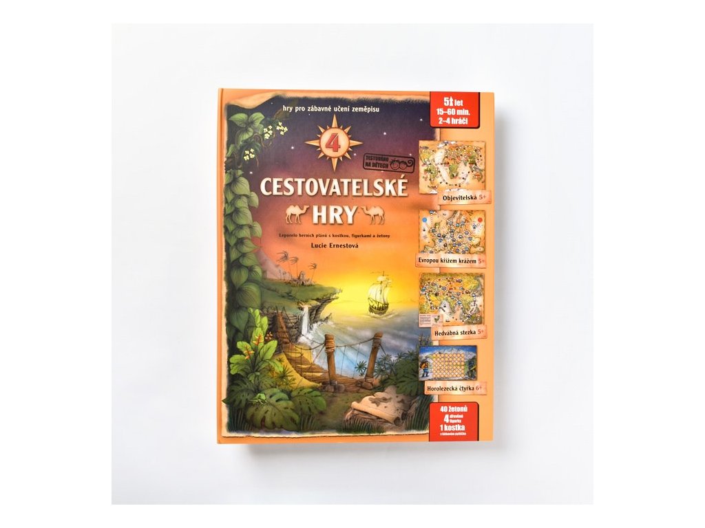 Hry pro předškoláky a malé školáky, při kterých zábavnou cestou získají základní ZEMĚPISNÉ znalosti. Při jejich hraní vzniká prostor pro vytváření vlastních příběhů a vzájemnému špičkování. Základní princip her je založen na náhodném hodu kostkou, ale mincové žetony přinášejí do hry možnost taktizovat a rozhodovat se. Soubor her je vyroben jako klasické leporelo z kašírovaného kartonu. Součástí balení je saténový sáček s dřevěnou kostkou a 4 figurkami a sada žetonů z tvrdého kartonu. Vhodné pro děti od pěti let.Doplňkové parametry