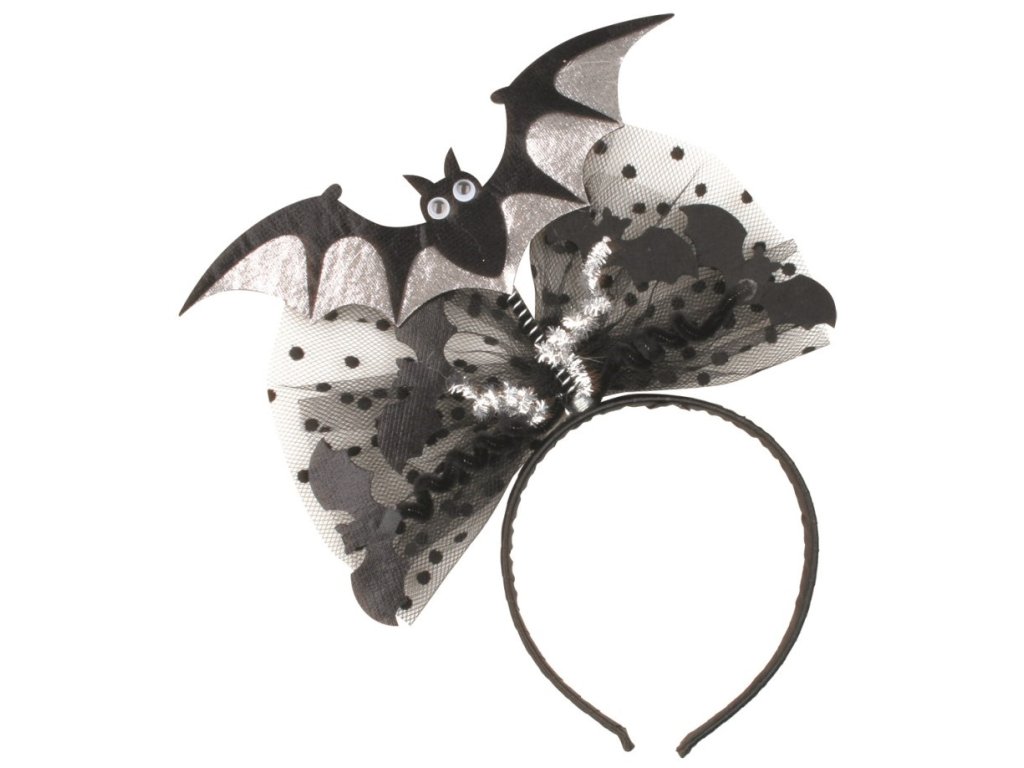 Stříbrná čelenka se třpytkami a mašle s netopýrem