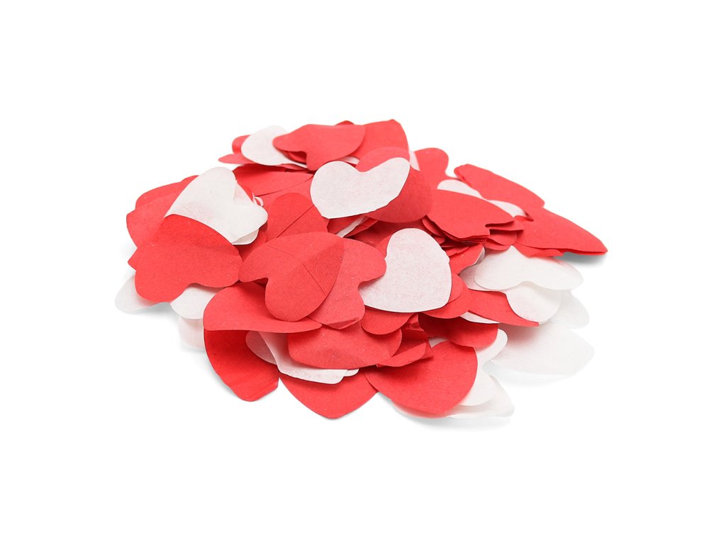 - barva konfet: červená/bílá srdíčka