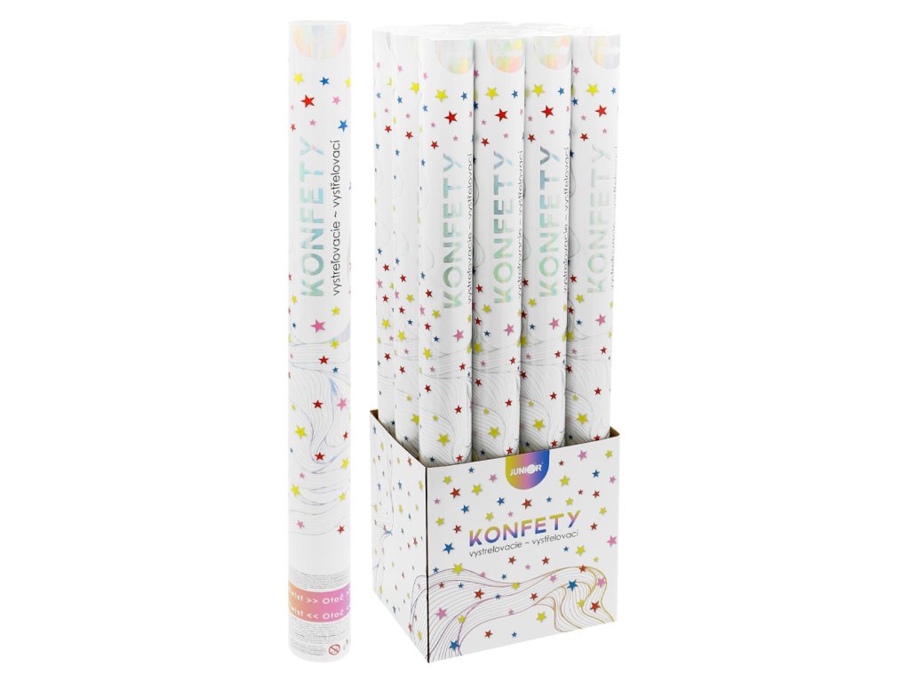 Střílející konfety - trubka 60 cm, barevné papírové hvězdy