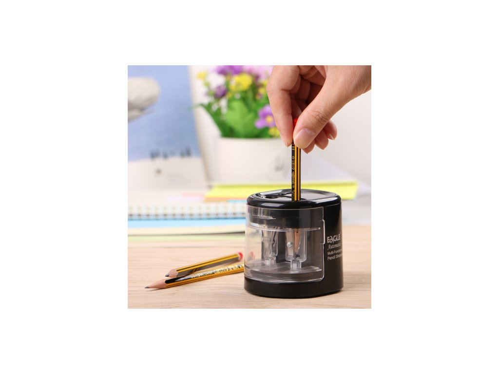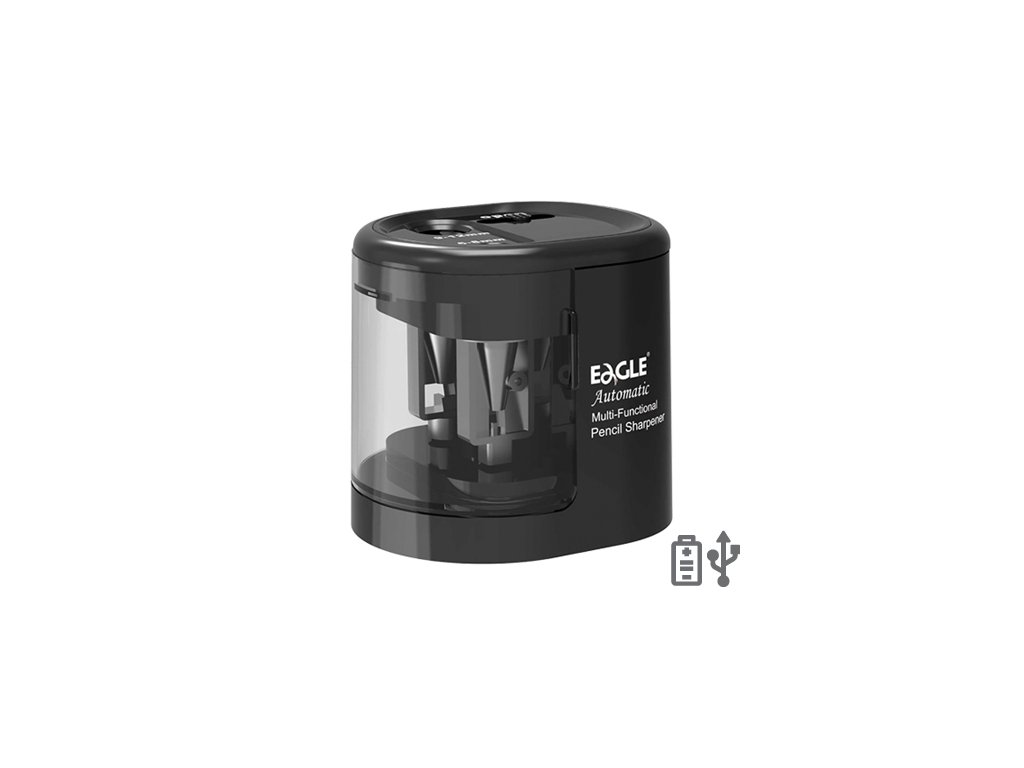Struhadlo na tužky/pastelky dvou rozměrů 6-8 mm a 9-12 mm. Struhadlo obsahuje odpadní nádobu. Napájení na baterie 4x AA 1,5V (nejsou součástí balení) nebo pomocí přiloženého USB kabelu. Jako zdroj napájení ze sítě můžete použít adaptér/nabíječku mobilního telefonu, nebo je možné připojit powerbanku (nejsou součástí balení). Součástí balení jsou 2 náhradní čepele. Zámek mikrospínače – bezpečný pro děti.Doplňkové parametry