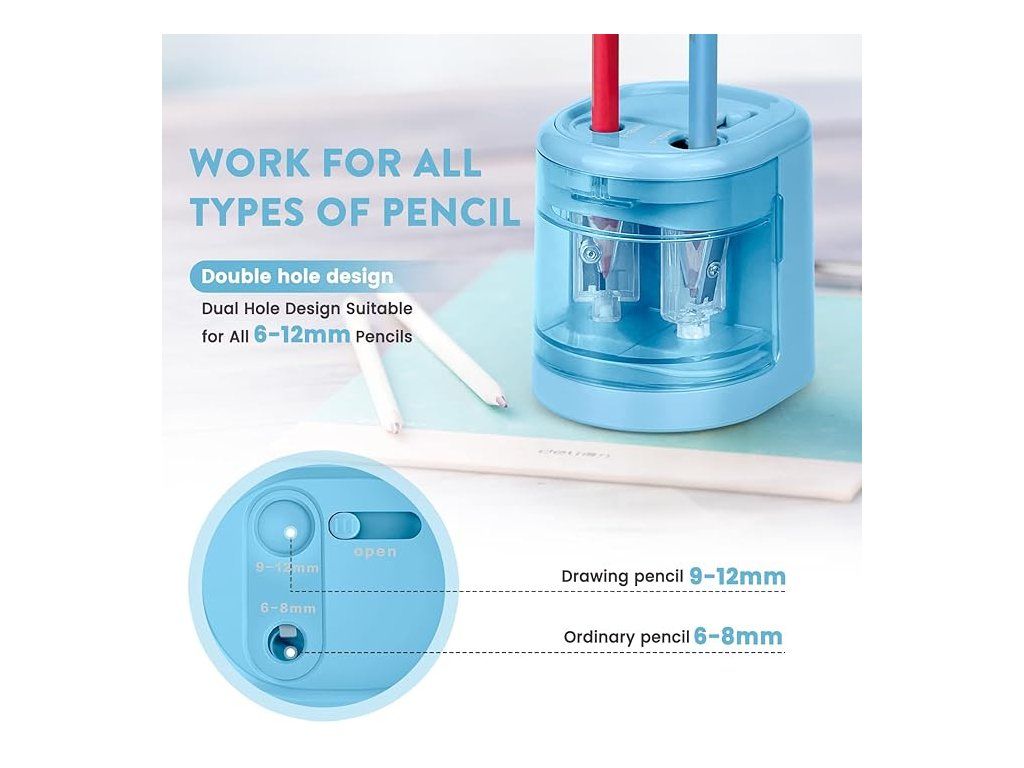 Automatické struhadlo na tužky a pastelky se dvěma otvory.