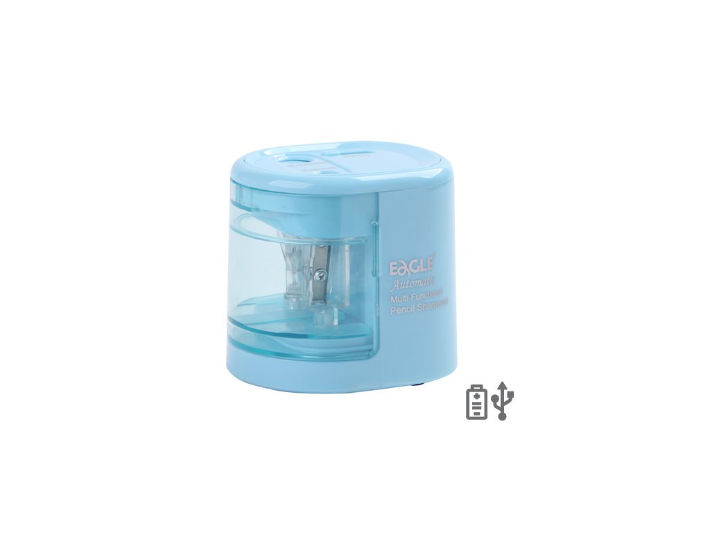 Struhadlo na tužky/pastelky dvou rozměrů 6-8 mm a 9-12 mm. Struhadlo obsahuje odpadní nádobu. Napájení na baterie 4x AA 1,5V (nejsou součástí balení) nebo pomocí přiloženého USB kabelu. Jako zdroj napájení ze sítě můžete použít adaptér/nabíječku mobilního telefonu, nebo je možné připojit powerbanku (nejsou součástí balení). Součástí balení jsou 2 náhradní čepele. Zámek mikrospínače – bezpečný pro děti.Doplňkové parametry