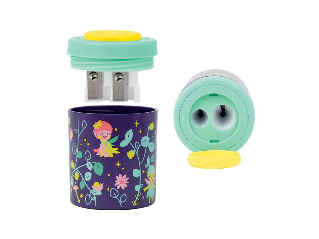 Dvojité struhadlo (standardní a MAXI) s nádobkou a praktickým šroubovacím uzávěrem. Ořezávátko má ostrou a odolnou čepel z uhlíkové oceli, díky čemuž je ideální pro všechny druhy tužek. Má také bezpečnostní systém čepele, který zabraňuje odpojení čepele od těla struhadla. Ideální pro školní použití. Různé barvy: fialová, zelená a růžová.Doplňkové parametry