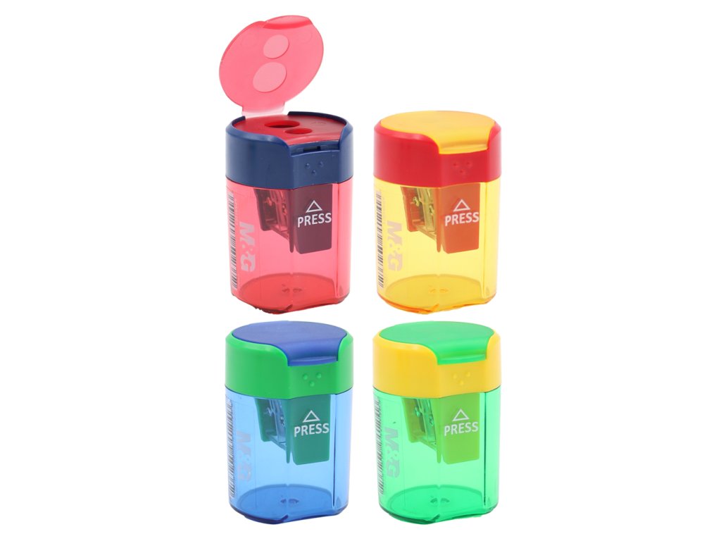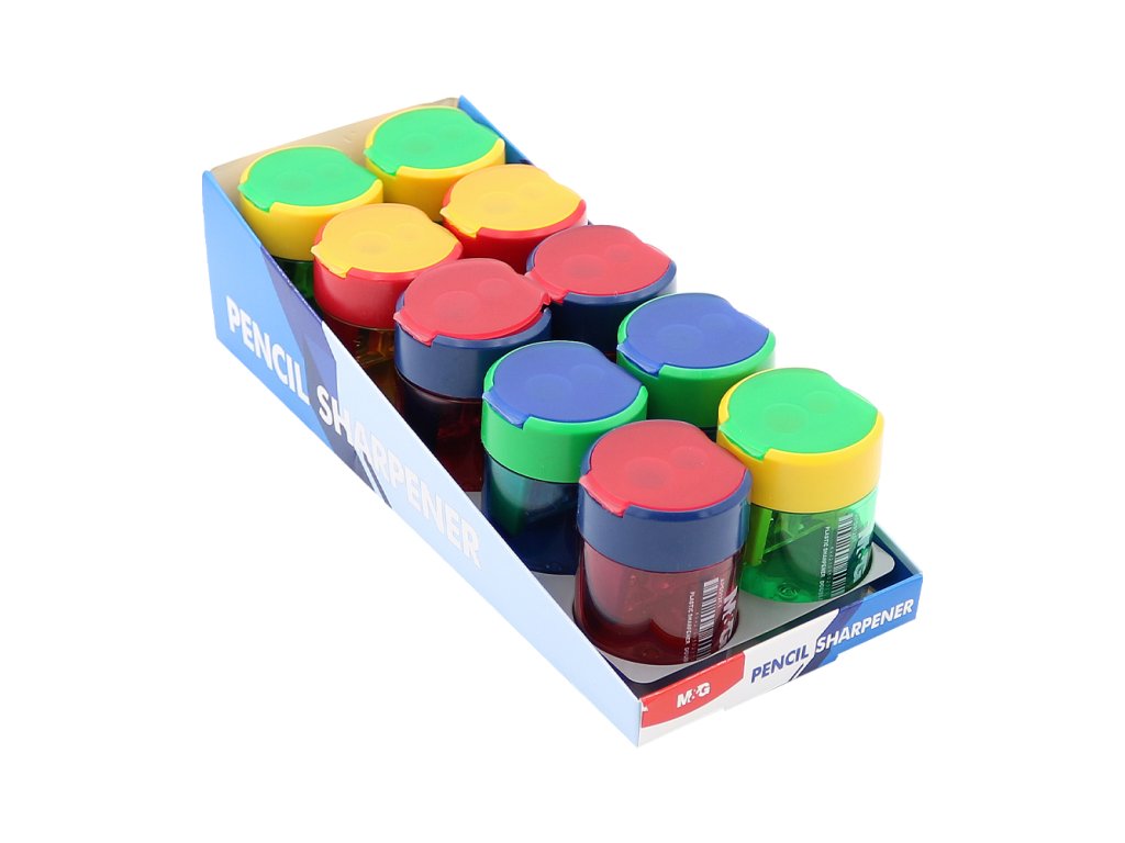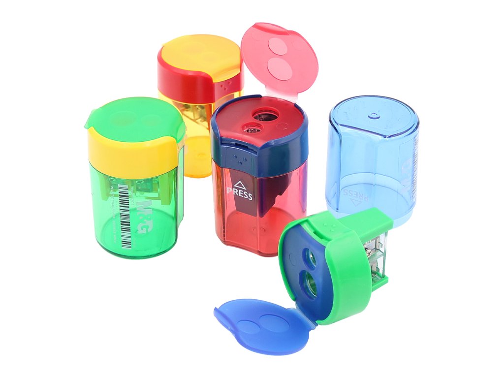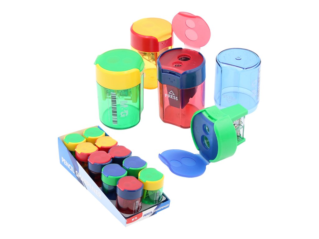 Dvojité struhadlo se zásobníkem vyrobeno z kvalitního PVC materiálu v 4 kombinacích barev. Vlastnosti: pro klasické tužky (barvičky) o průměru 7 mm pro jumbo tužky (barvičky) o průměru 10 mm vhodné pro použití ve škole i kanceláři průhledné tělo umožní snadno kontrolovat stav zásobníku Cena je za 1 kus.Doplňkové parametry
