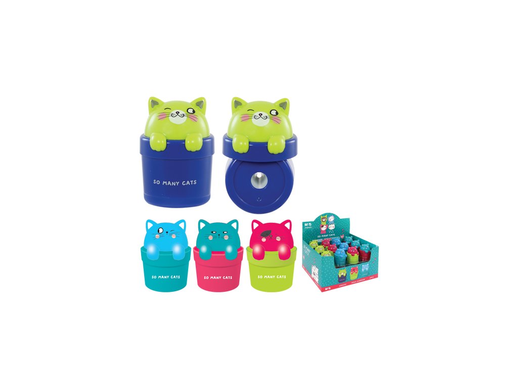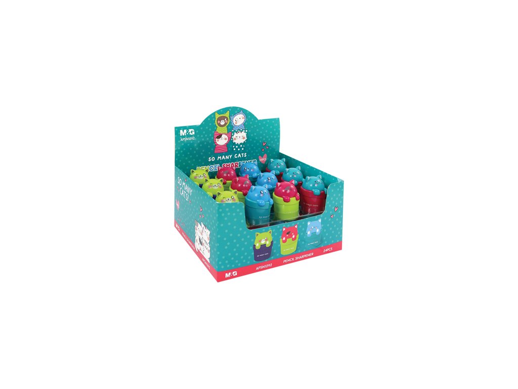 Struhadlo M & G So Many Cats se zásobníkem, vyrobené z kvalitního PVC materiálu. Struhadlo s ocelovým nožem na klasické tužky. Vhodné pro použití ve škole.Doplňkové parametry