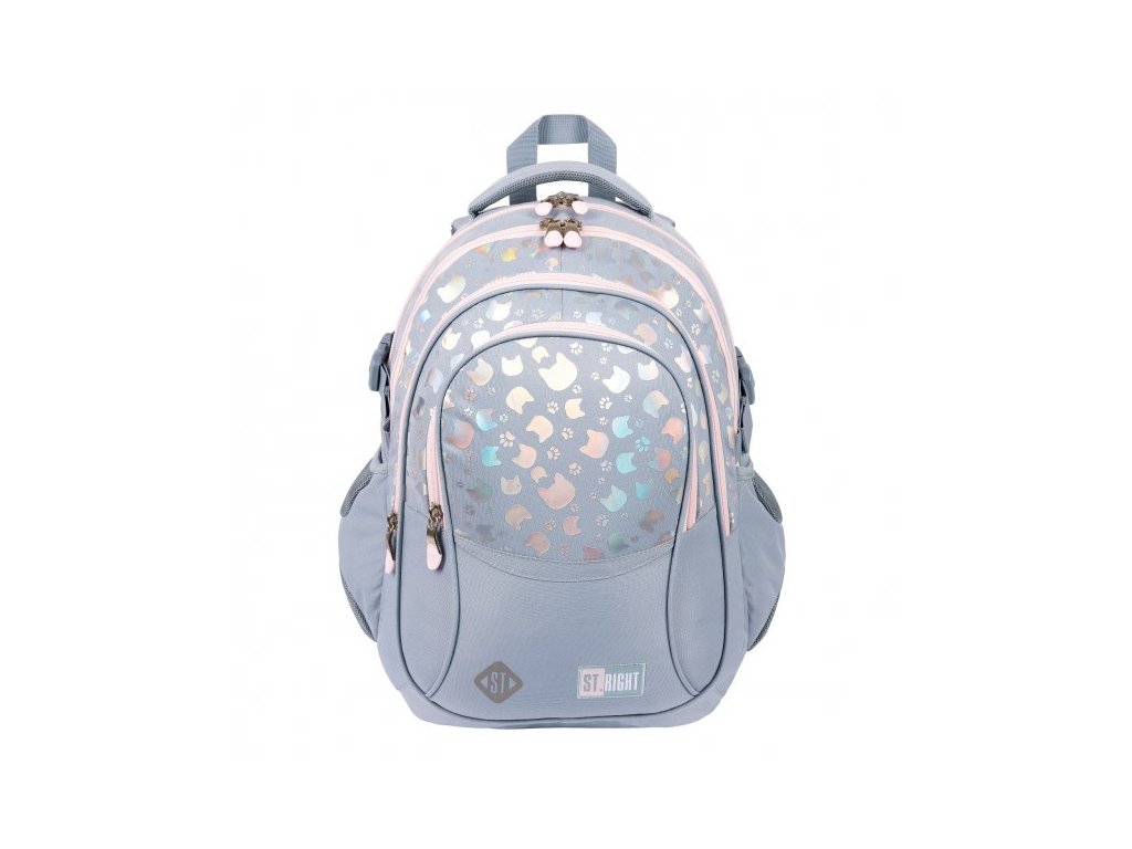 Studentský batoh 17 St.RIGHT - Silver Cats, 4 komorový, BP01, rozměry: 43 x 32 x 21cm