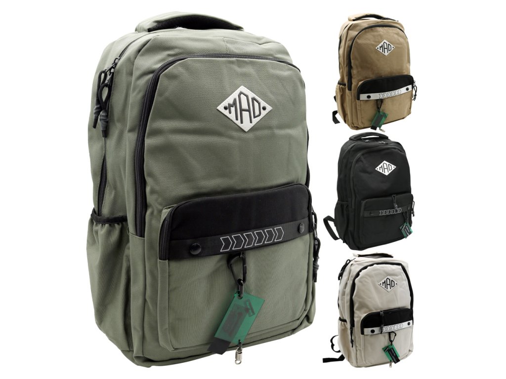 Veľký a ľahký 2-komorový batoh do ktorého sa pohodlne zmestia všetky školské potreby (farba: čierna, zelená, béžová a hnedá).
