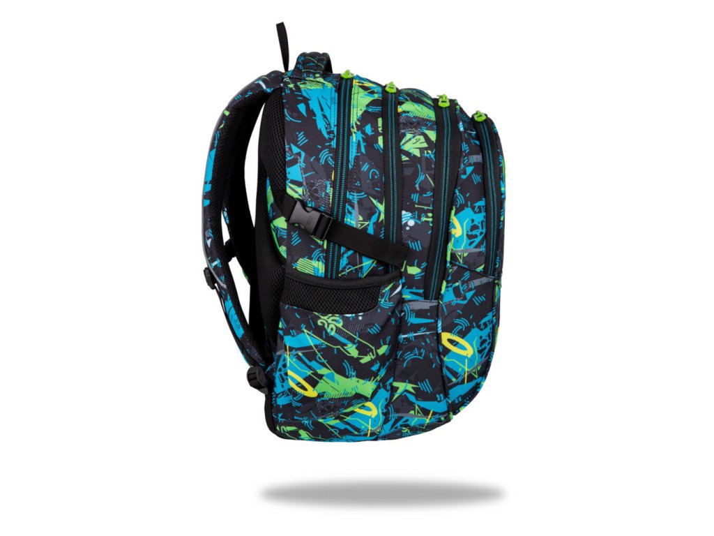 Velký studentský batoh CoolPack Factor • 4komorový • nepromokavý systém H2O • zesílené dno • zpevněná a anatomicky tvarovaná záda • boční kapsy na láhev s vodou • polstrovaná kapsa na notebook • polstrované nastavitelné ramenní popruhy • polstrovaná rukojeť • kapsička na zip a poutko na klíče • reflexní prvky • objem: 29 lDoplňkové parametry