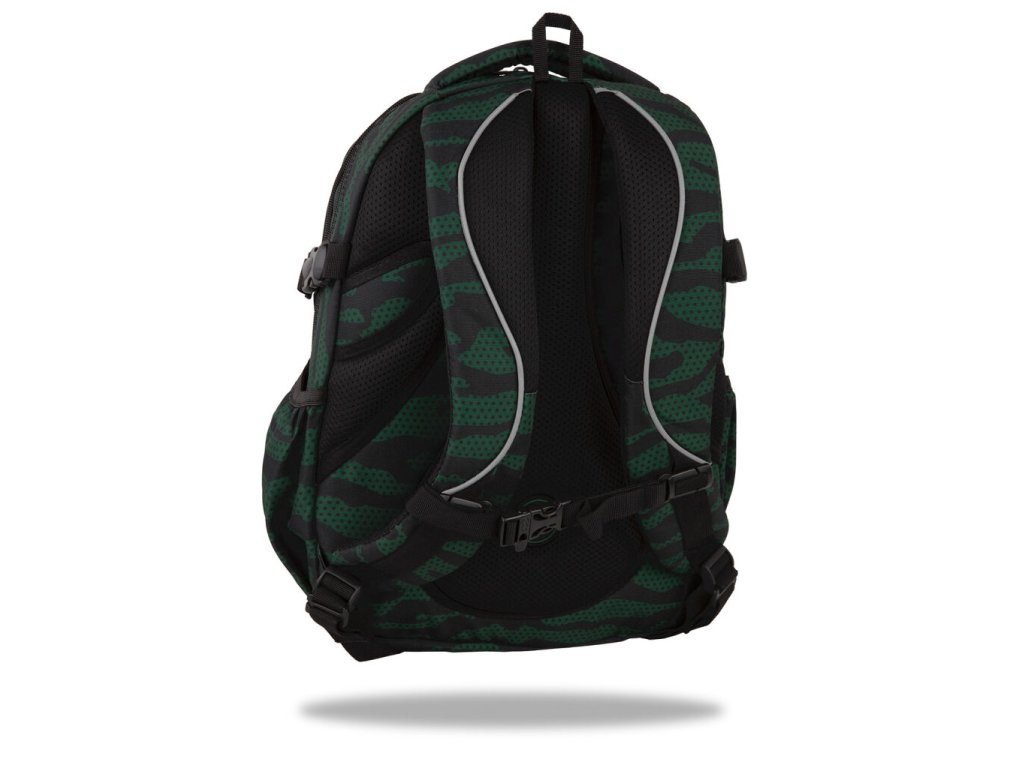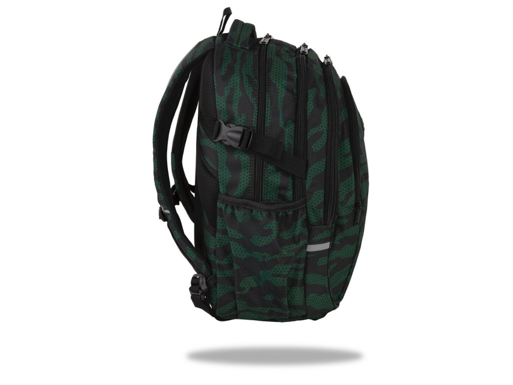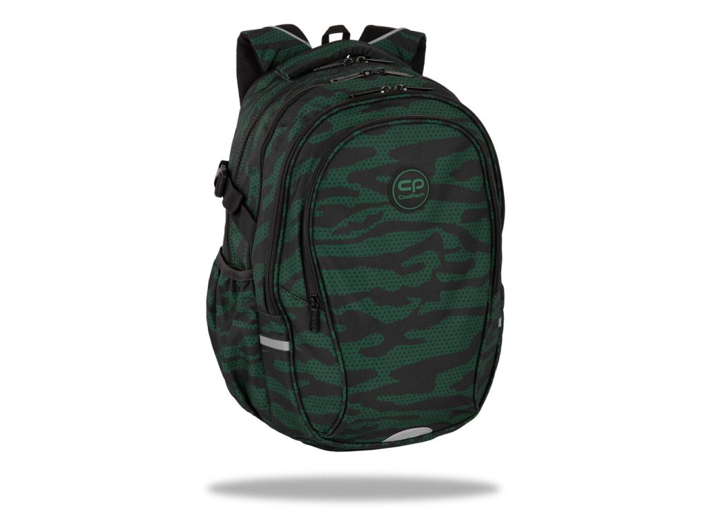Velký studentský batoh CoolPack Factor • 4komorový • nepromokavý systém H2O • zesílené dno • zpevněná a anatomicky tvarovaná záda • boční kapsy na láhev s vodou • polstrovaná kapsa na notebook • polstrované nastavitelné ramenní popruhy • polstrovaná rukojeť • kapsička na zip a poutko na klíče • reflexní prvky • objem: 29 lDoplňkové parametry