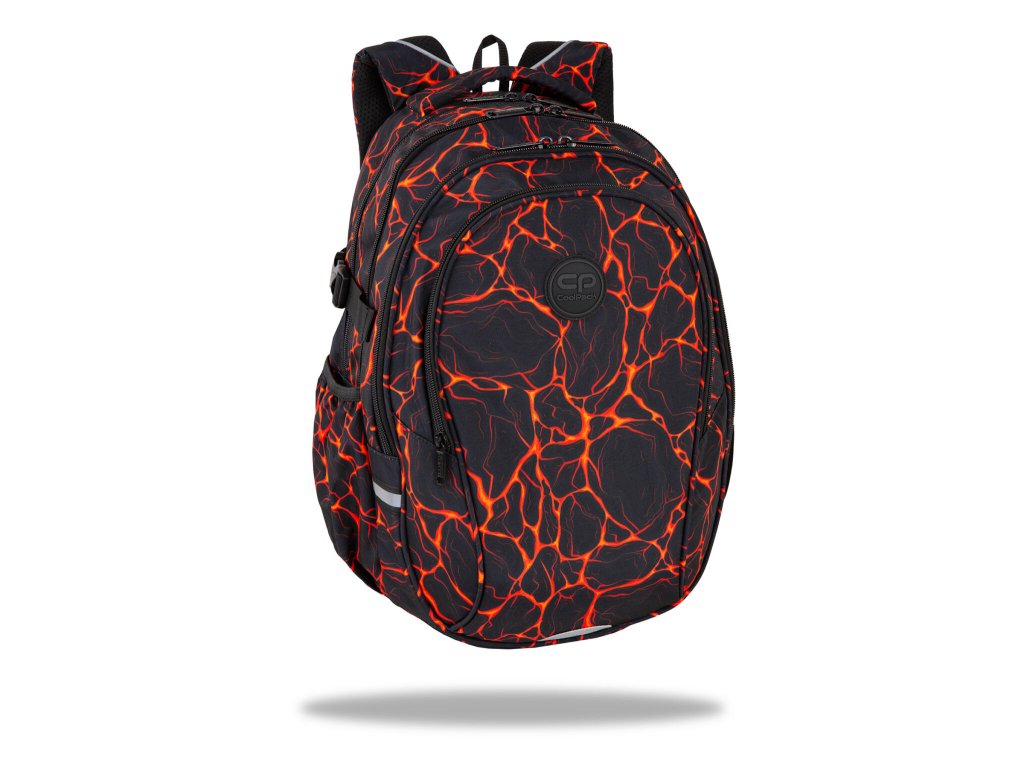Velký studentský batoh CoolPack Factor • 4komorový • nepromokavý systém H2O • zesílené dno • zpevněná a anatomicky tvarovaná záda • boční kapsy na láhev s vodou • polstrovaná kapsa na notebook • polstrované nastavitelné ramenní popruhy • polstrovaná rukojeť • kapsička na zip a poutko na klíče • reflexní prvky • objem: 29 lDoplňkové parametry