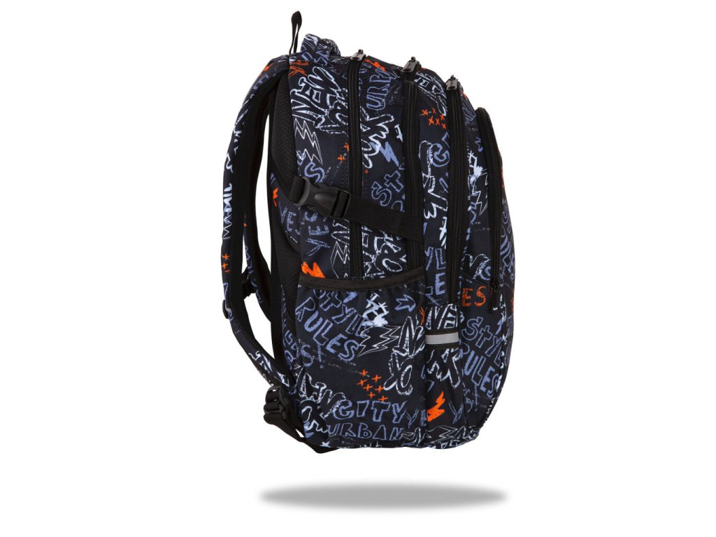 Velký studentský batoh CoolPack Factor • 4komorový • nepromokavý systém H2O • zesílené dno • zpevněná a anatomicky tvarovaná záda • boční kapsy na láhev s vodou • polstrovaná kapsa na notebook • polstrované nastavitelné ramenní popruhy • polstrovaná rukojeť • kapsička na zip a poutko na klíče • reflexní prvky • objem: 29 lDoplňkové parametry