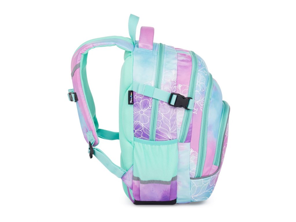 Batoh OXY Scooler je ideální volbou pro školáky od 3. třídy, kteří potřebují dostatek prostoru na všechno důležité. Tříkomorový batoh nabízí spoustu místa na učebnice, sešity i svačinu, nechybí organizér na drobnosti, vnitřní kapsa a přihrádka na notebook. Boční kapsa je perfektní na láhev s pitím, zatímco držák na klíče nebo čip ušetří jejich zdlouhavé hledání. Díky anatomicky tvarovaným prodyšným zádům, nastavitelným ramenním popruhům a hrudnímu popruhu sedí batoh pohodlně na zádech i při delším nošení. Zpevněné nepromokavé dno chrání obsah před vlhkostí, reflexní prvky zajišťují větší bezpečnost na cestě do školy i zpět. Spolehlivý parťák pro školní dny i volnočasové aktivity. Délka zádového panelu je 43 cm, objem činí 28 l, hmotnost batohu je 780 g a jeho nosnost je 8 kg.Doplňkové parametry