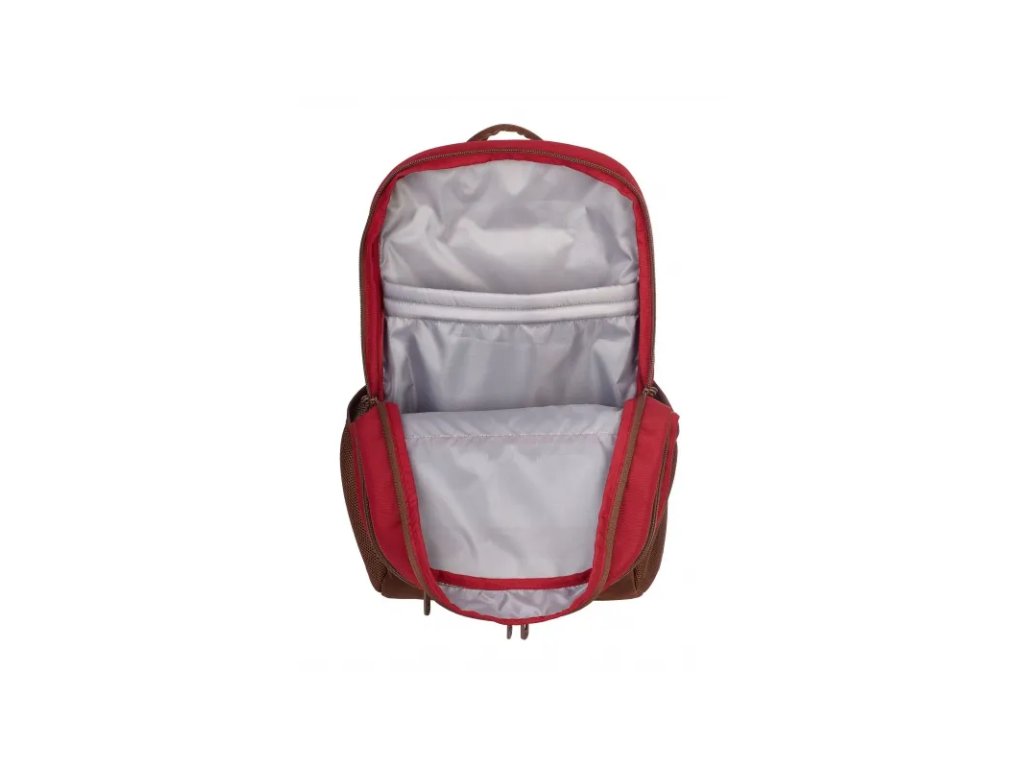 • batoh má uvnitř samostatnou polstrovanou přepážku na laptop, malá kapsička na zip na doklady, boční síťové kapsy na nápoje