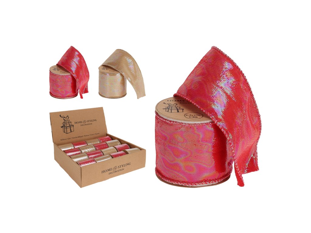 Stuha dekorační, šířka 63 mm, třpytivý potisk, 2 barvy