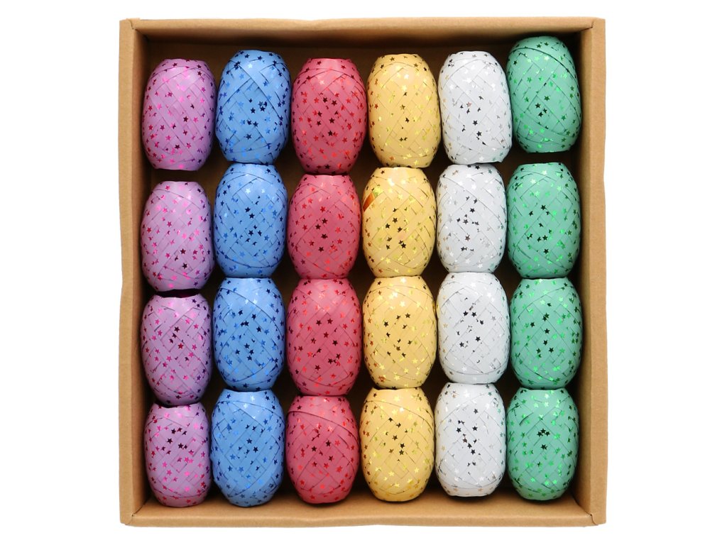 Barevná stuha pro balení dárků v 6-ti barvách.- matný povrch s lesklými hvězdičkami