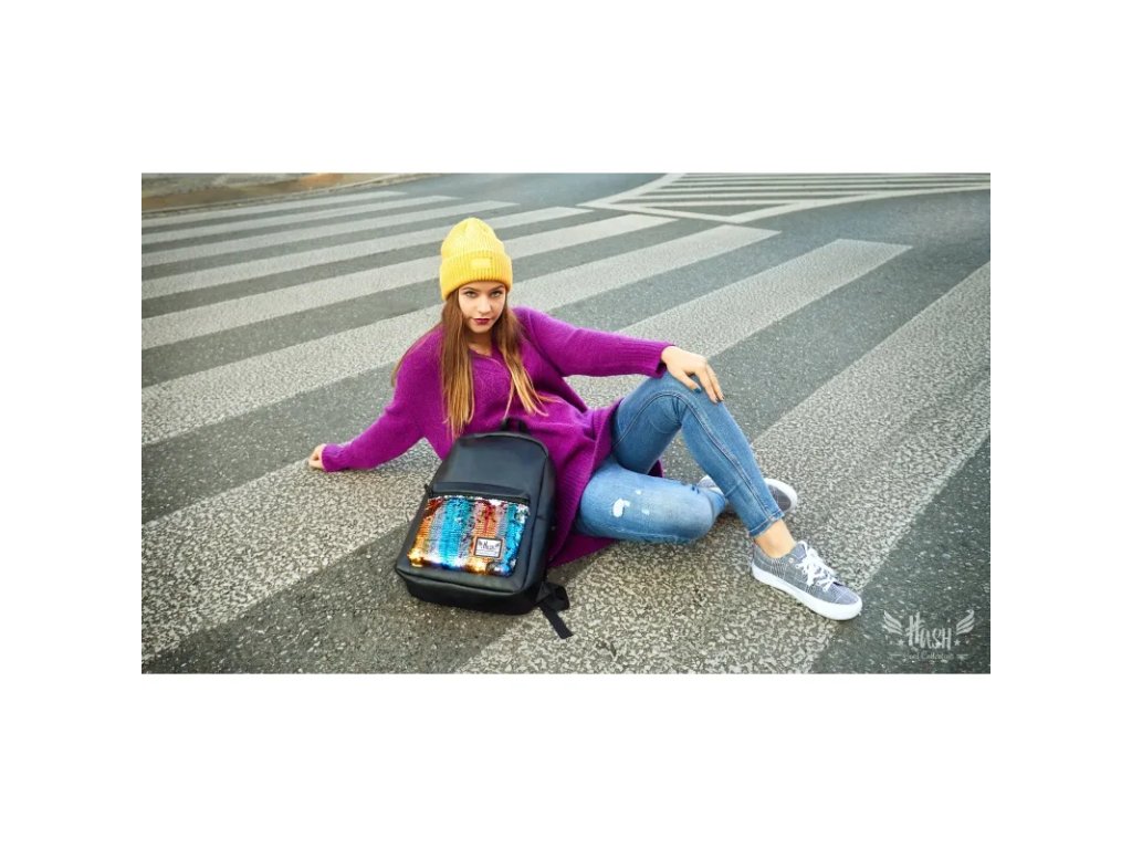Stylový koženkový batoh HASH, Gold Sequins, HS-138, 502019091