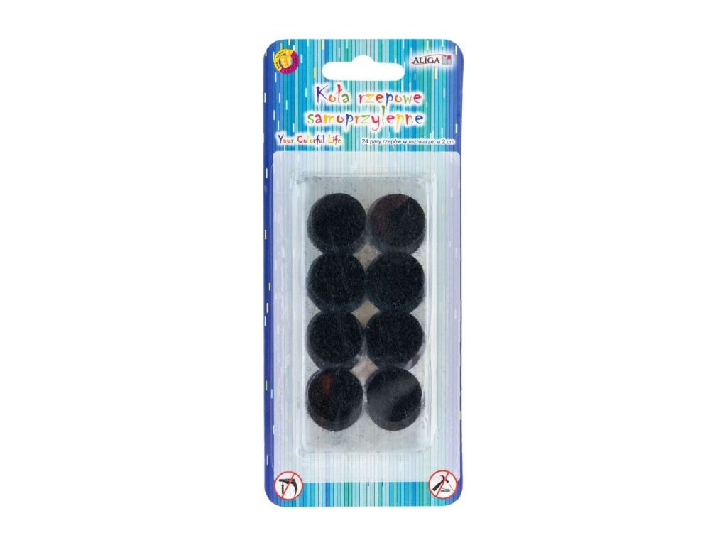 Suché zipy - kolečka o průměru 2 cm černé, samolepící. V balení 24 ks suchých zipů.Doplňkové parametry