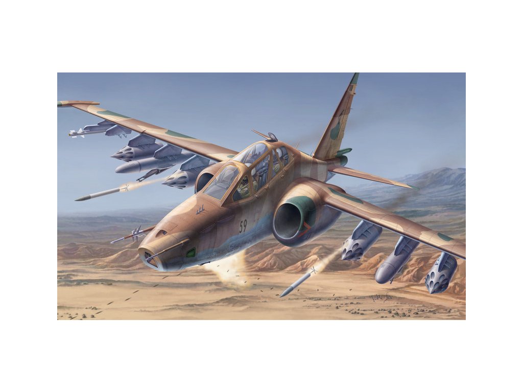 Plastikový model letadla Suchoj SU-25 UB/UBK v měřítku 1:48, počet dílků 134, rozpětí křídel 29,9 délka modelu 32,35. Balení neobsahuje barvy a lepidlo, počet zbarvení 6. Je vyrobeno v ČR.Doplňkové parametry