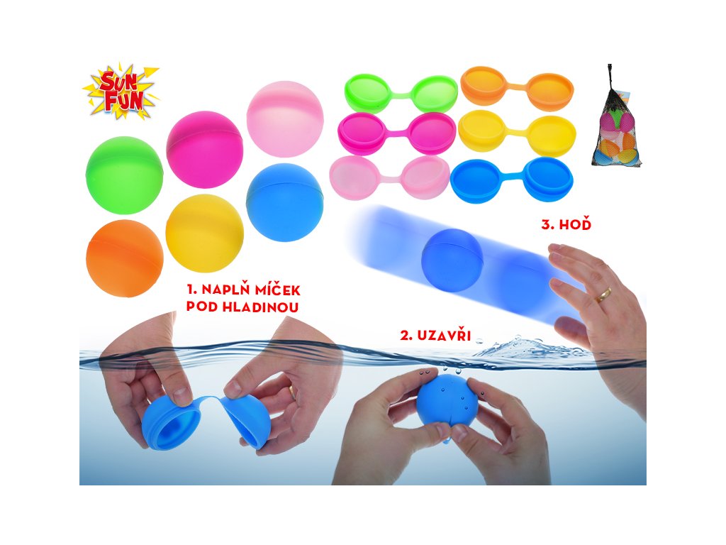 Sun Fun míčky na vodu 6cm znovupoužitelné 6ks v síťce